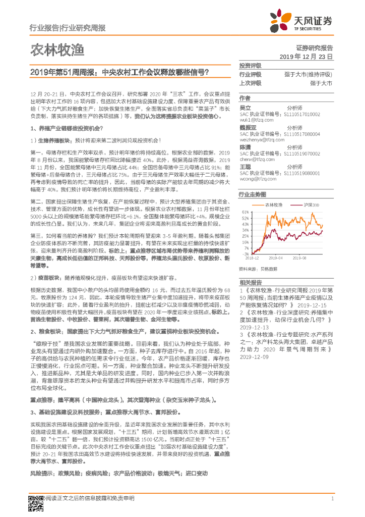 天风证券:农林牧渔2019年第51周周报:中央农村工作会议释放哪些信号?.pdf