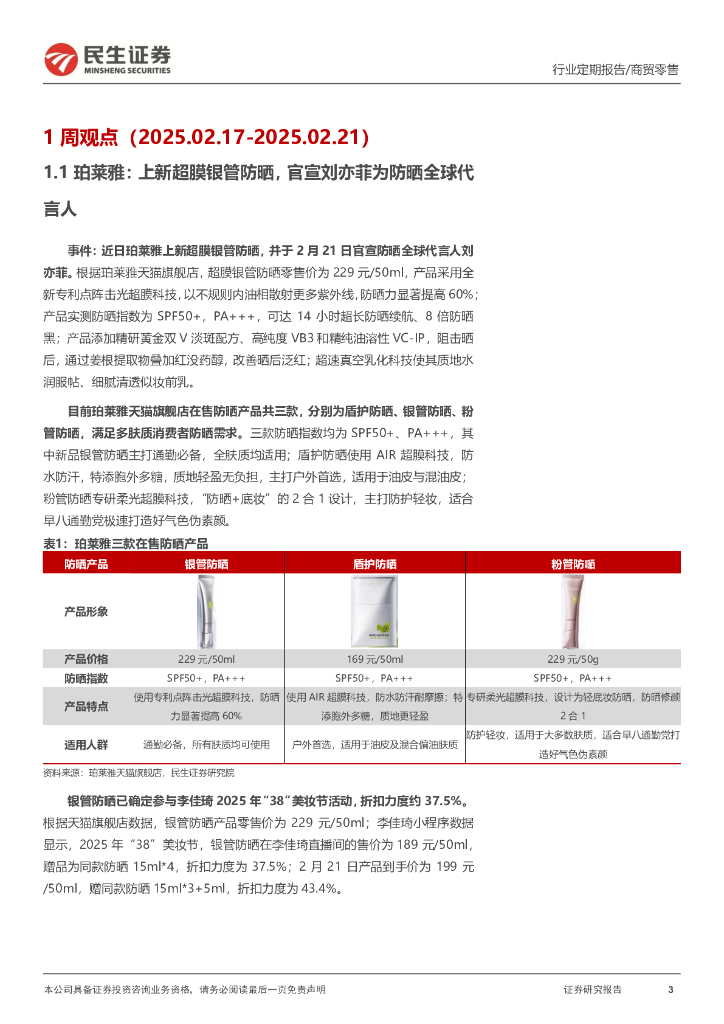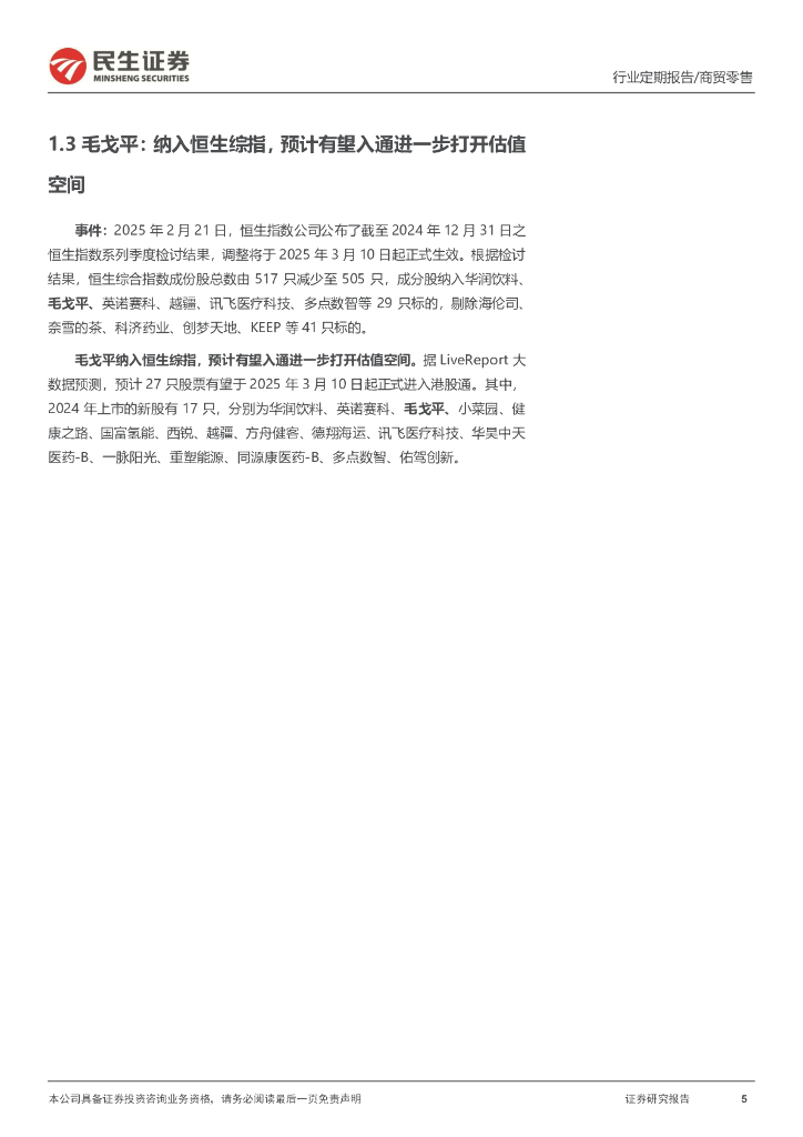 民生证券:零售周观点:美白与防晒新赛点降至,毛戈平纳入恒生综指有望入通进一步打开估值空间.pdf