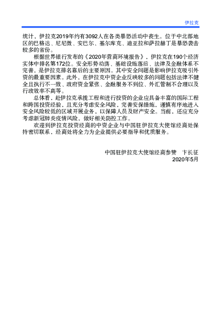 商务部:对外投资合作国别(地区)指南:伊拉克(2020年版).pdf