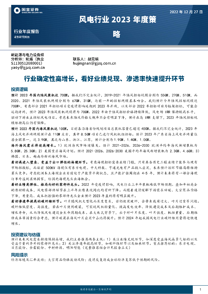 国金证券:风电行业2023年度策略:行业确定性高增长,看好业绩兑现、渗透率快速提升环节.pdf