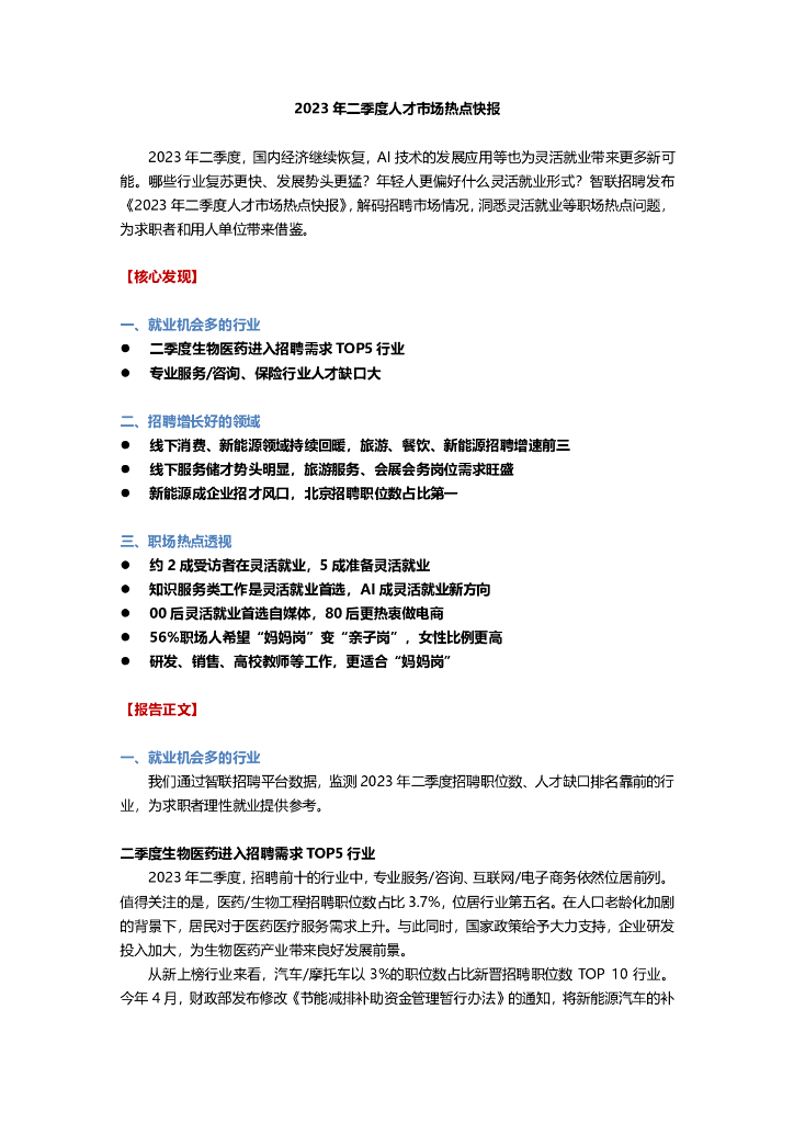 智联招聘:2023年二季度人才市场热点快报.pdf