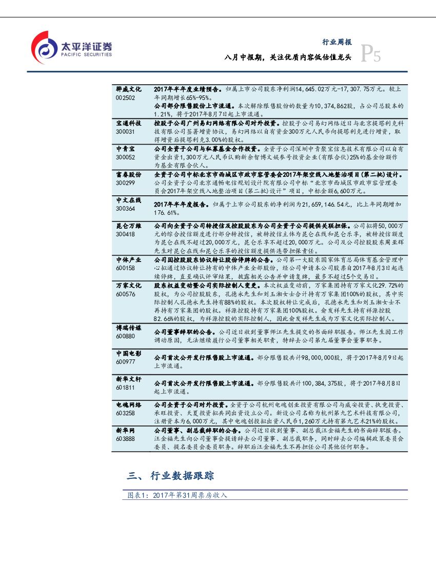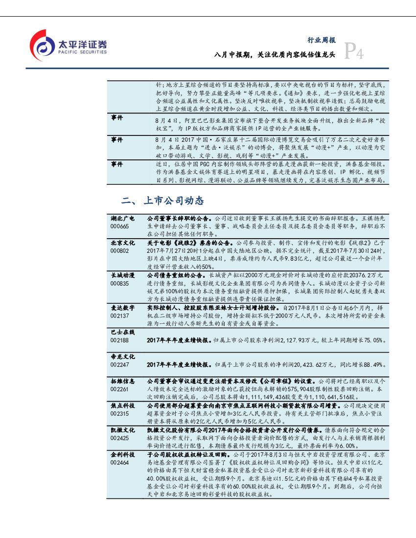 太平洋证券:文化传媒行业周报:八月中报期,关注优质内容低估值龙头.pdf