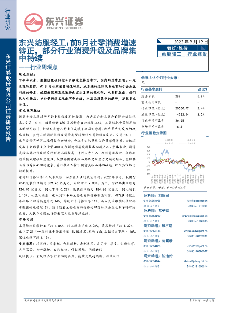 东兴证券:行业周观点:东兴纺服轻工:前8月社零消费增速转正,部分行业消费升级及品牌集中持续.pdf