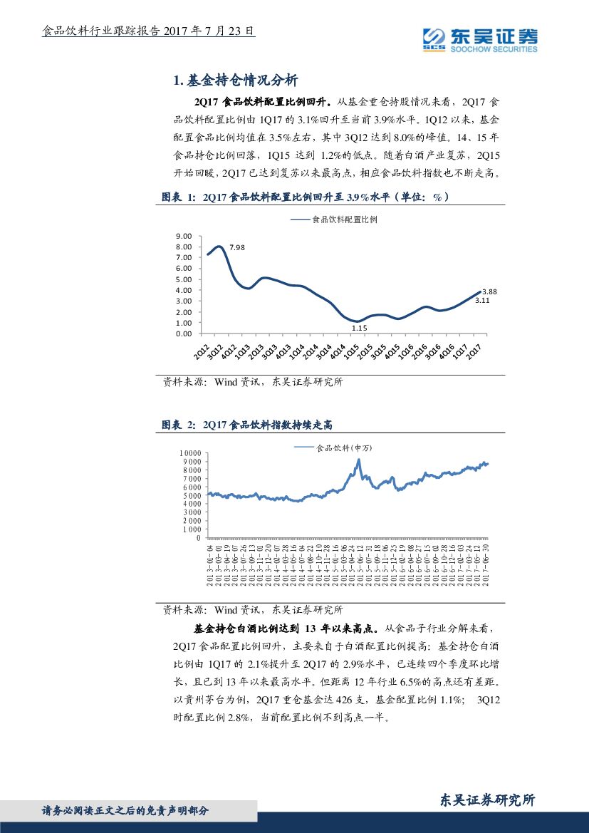 东吴证券:食品饮料行业跟踪报告:白酒备受青睐,2Q17基金重仓比例提升.pdf