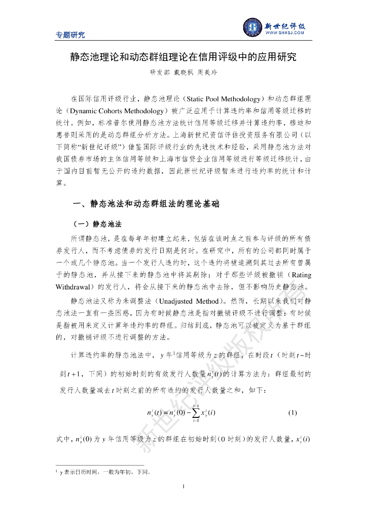 新世纪评级:静态池理论和动态群组理论在信用评级中的应用研究.pdf