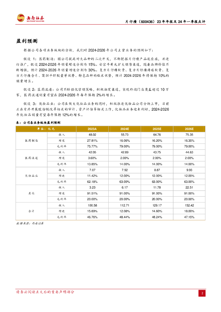 西南证券:片仔癀(600436)-大单品快速增长,成本上涨影响毛利.pdf