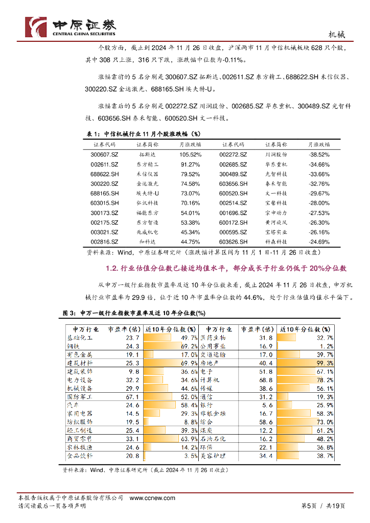 中原证券:机械行业月报:关注景气度向好的顺周期机械与成长子行业龙头.pdf