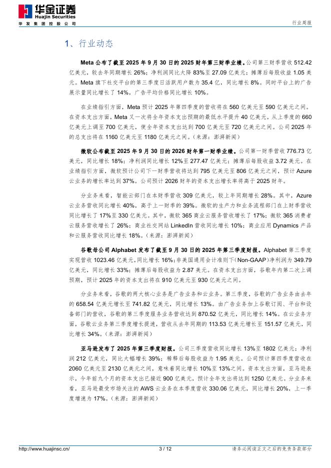 华金证券:电子行业周报:AI&半导体:海外CSP厂商持续上调资本开支.pdf
