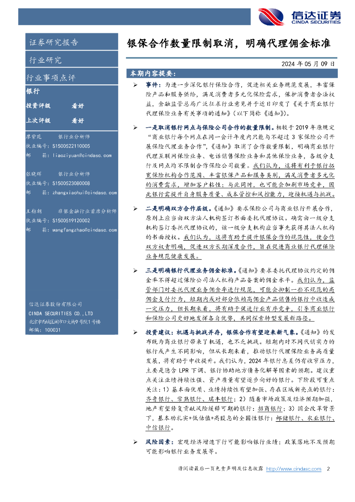 信达证券:银行行业事项点评:银保合作数量限制取消,明确代理佣金标准.pdf