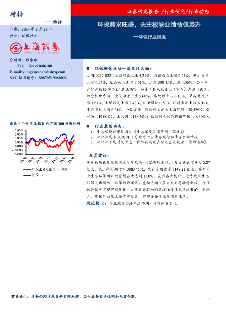 上海证券:环保行业周报:环保需求旺盛,关注板块业绩估值提升.pdf