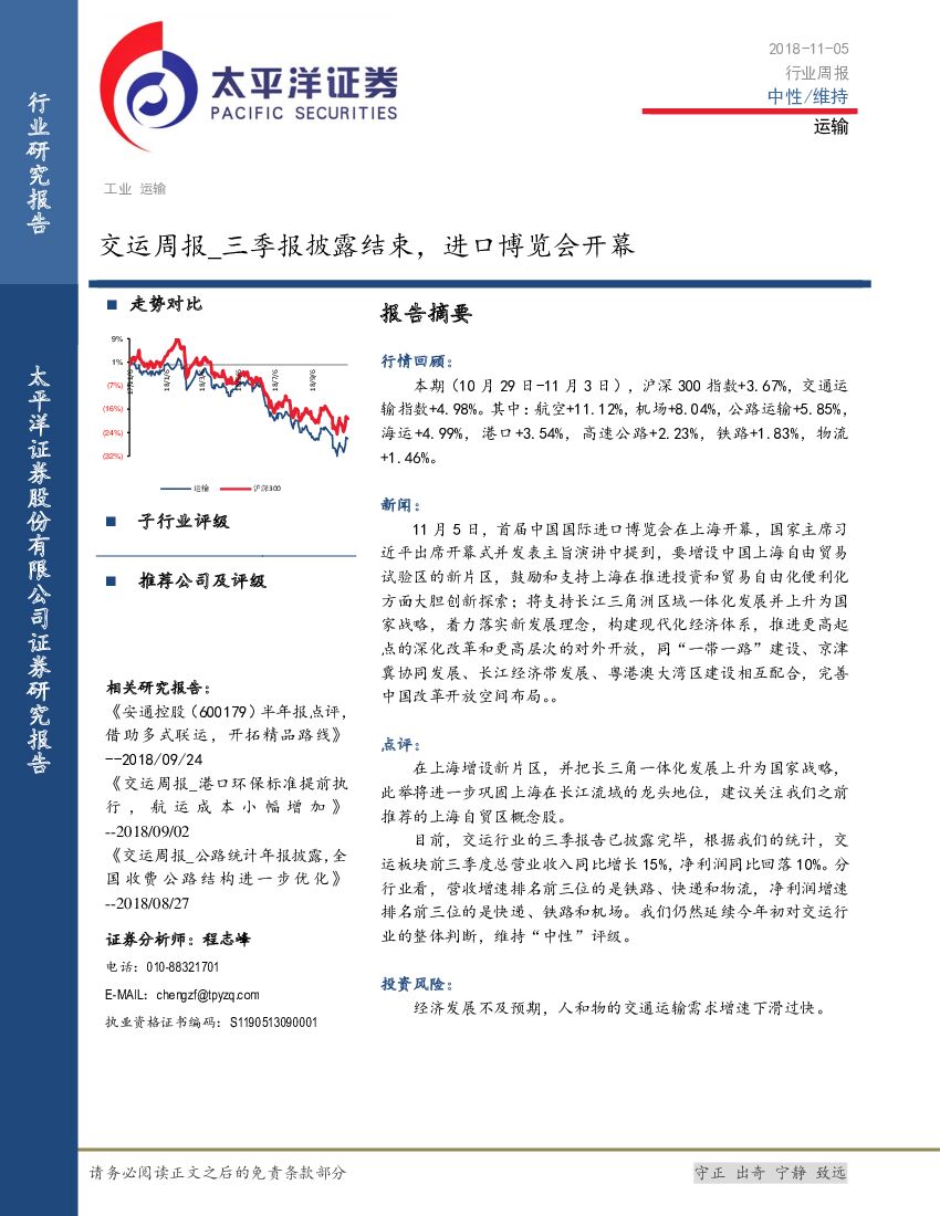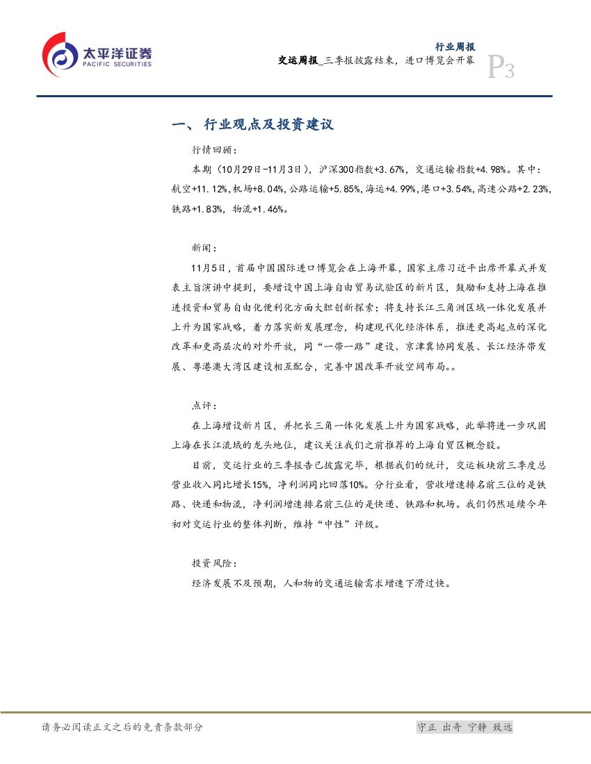 太平洋证券:交运周报:三季报披露结束,进口博览会开幕.pdf