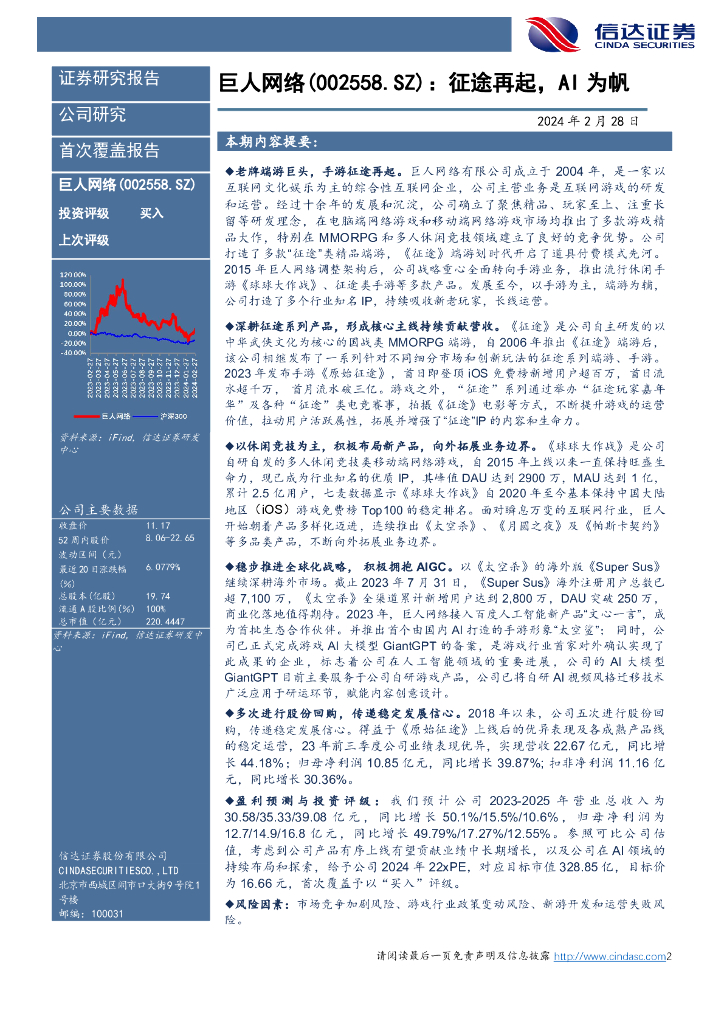 信达证券:巨人网络(002558)-首次覆盖报告:征途再起,AI为帆.pdf