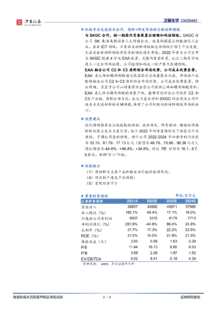 华安证券:卫星化学(002648)-拟建二期EAA装置,致力解决卡脖子关键材料.pdf