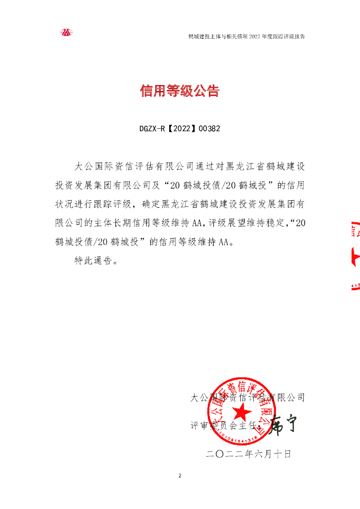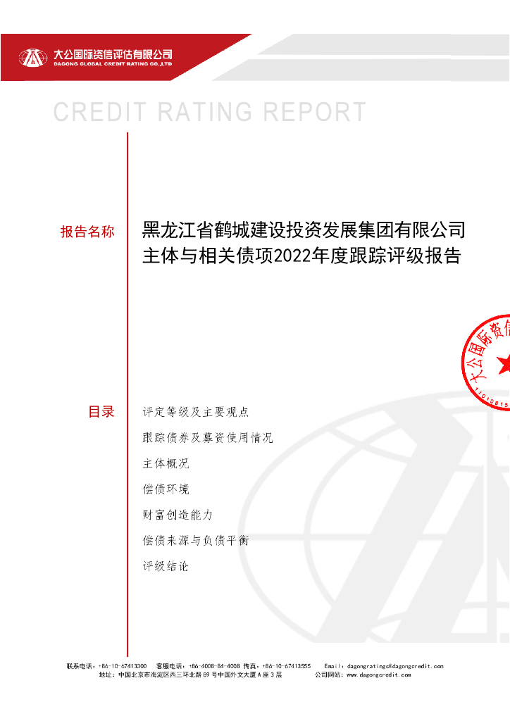 大公:黑龙江省鹤城建设投资发展集团有限公司主体与相关债项2022年度跟踪评级报告.pdf