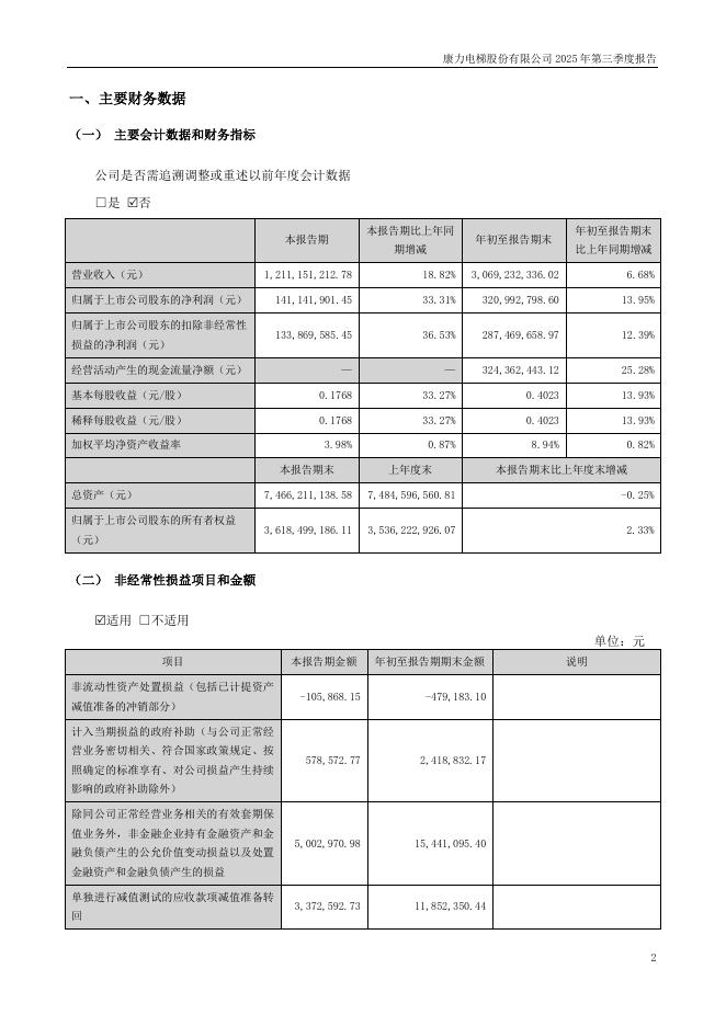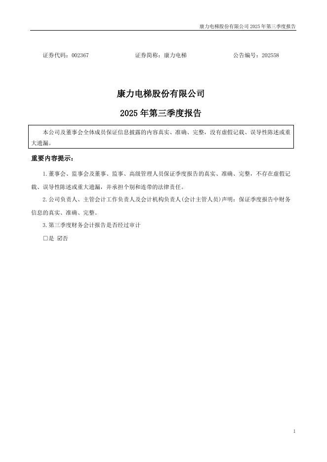 002367-康力电梯:2025年三季度报告.pdf