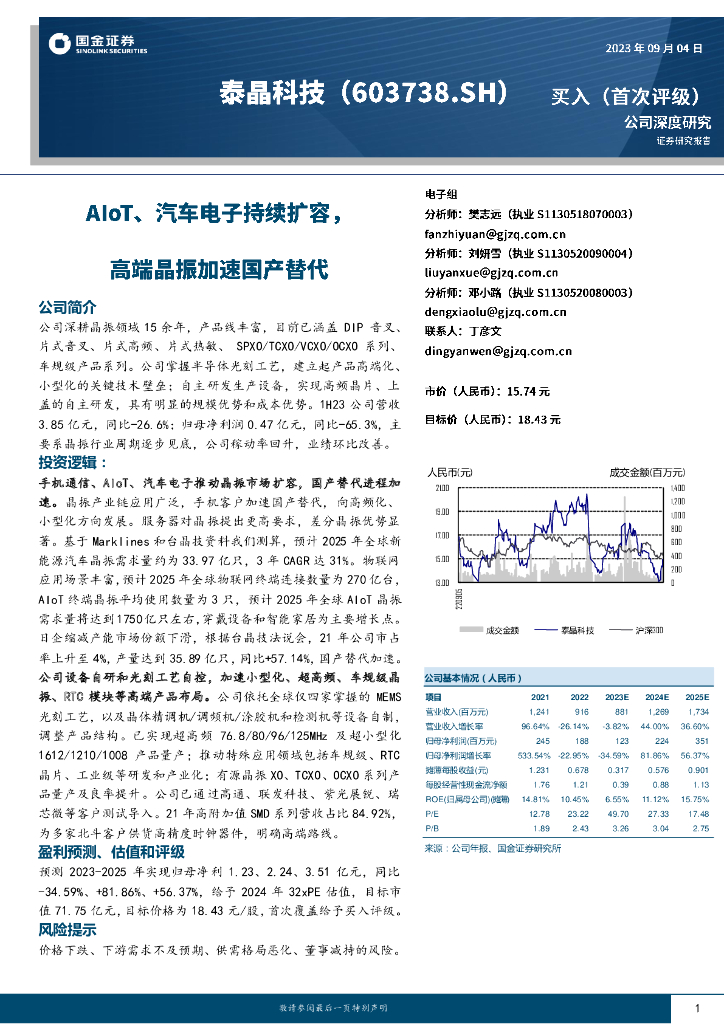 国金证券:泰晶科技(603738)-AIoT、汽车电子持续扩容,高端晶振加速国产替代.pdf