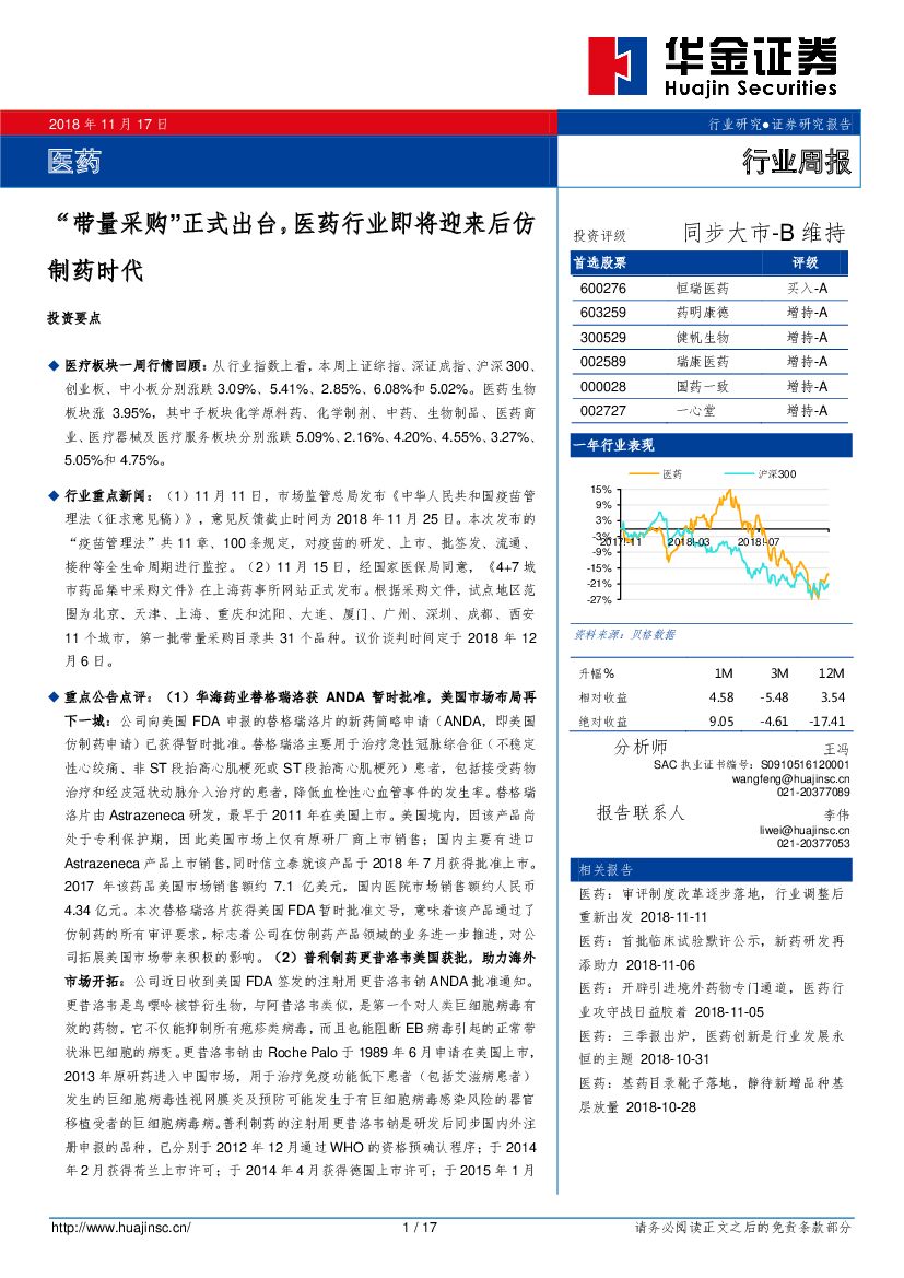 华金证券:医药行业周报:“带量采购”正式出台,医药行业即将迎来后仿制药时代.pdf