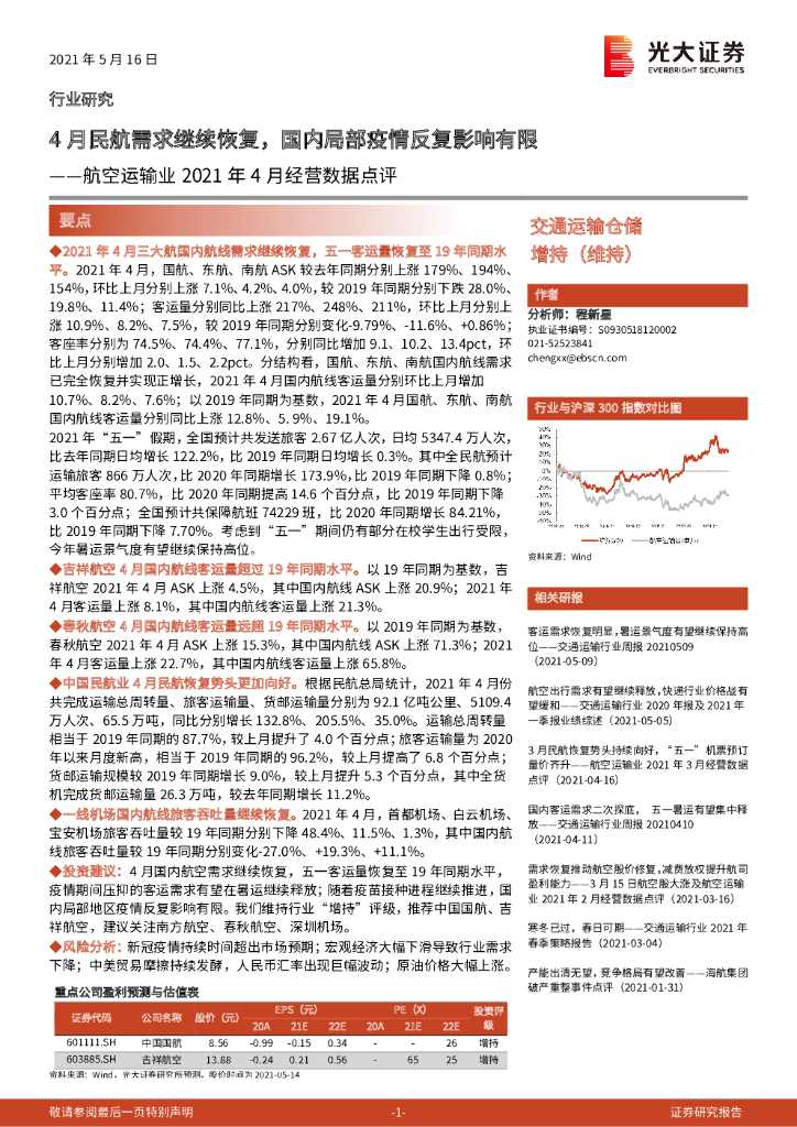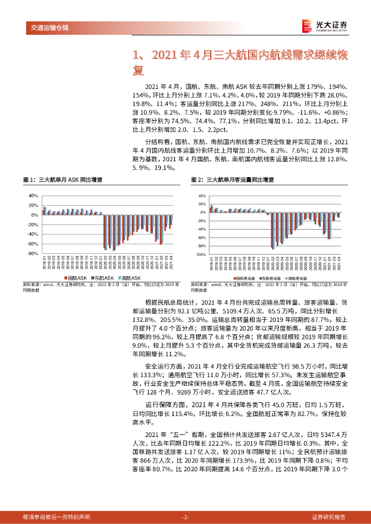 光大证券:航空运输业2021年4月经营数据点评:4月民航需求继续恢复,国内局部疫情反复影响有限.pdf