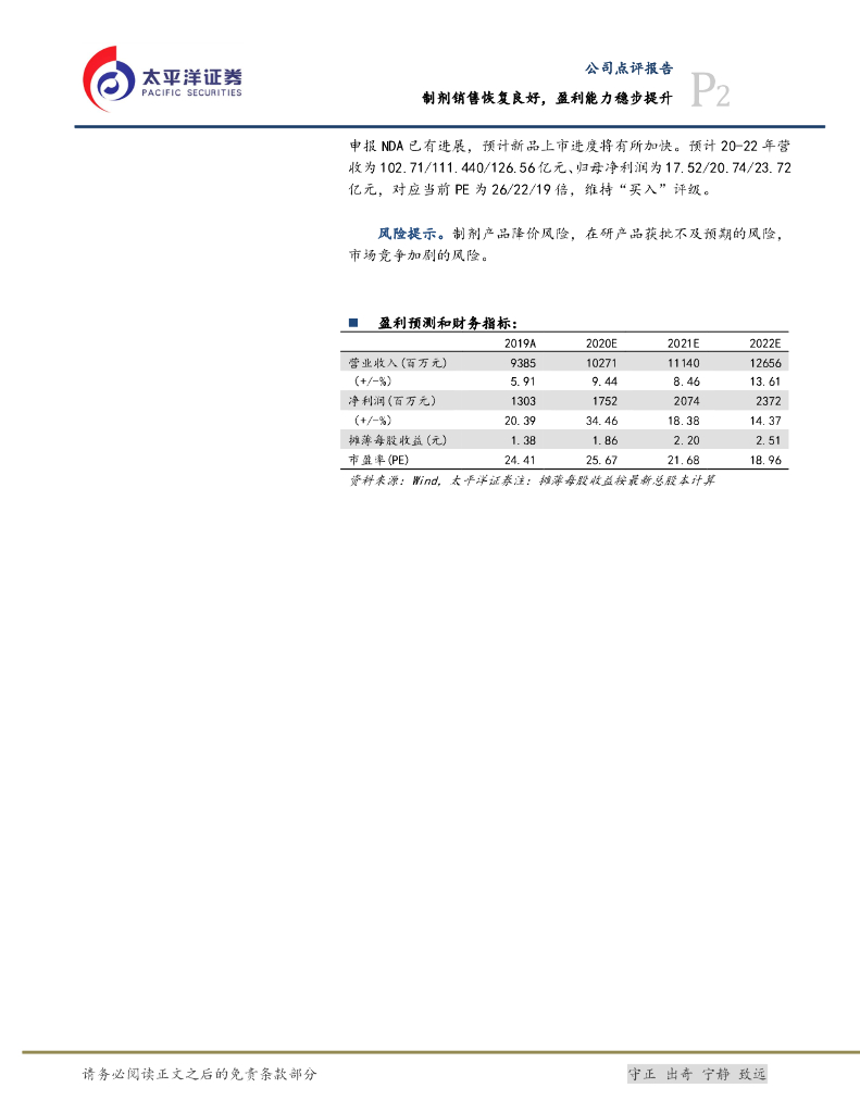 太平洋证券:丽珠集团(000513)-制剂销售恢复良好,盈利能力稳步提升.pdf