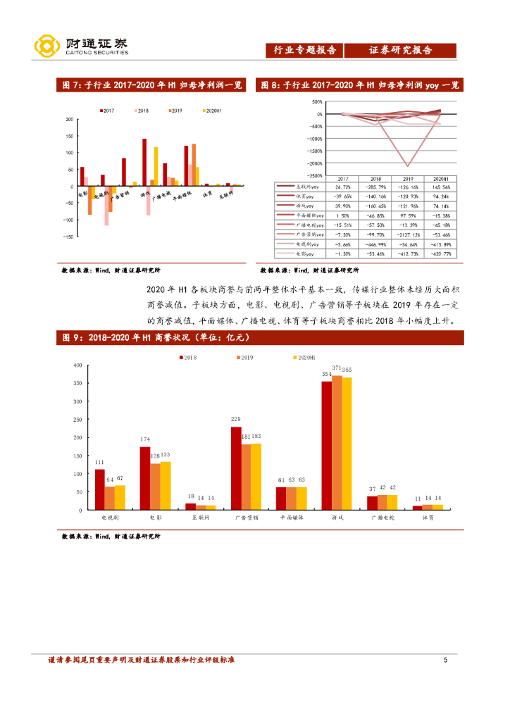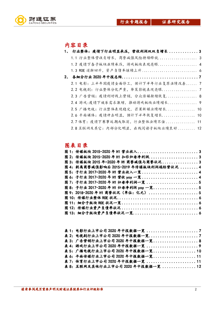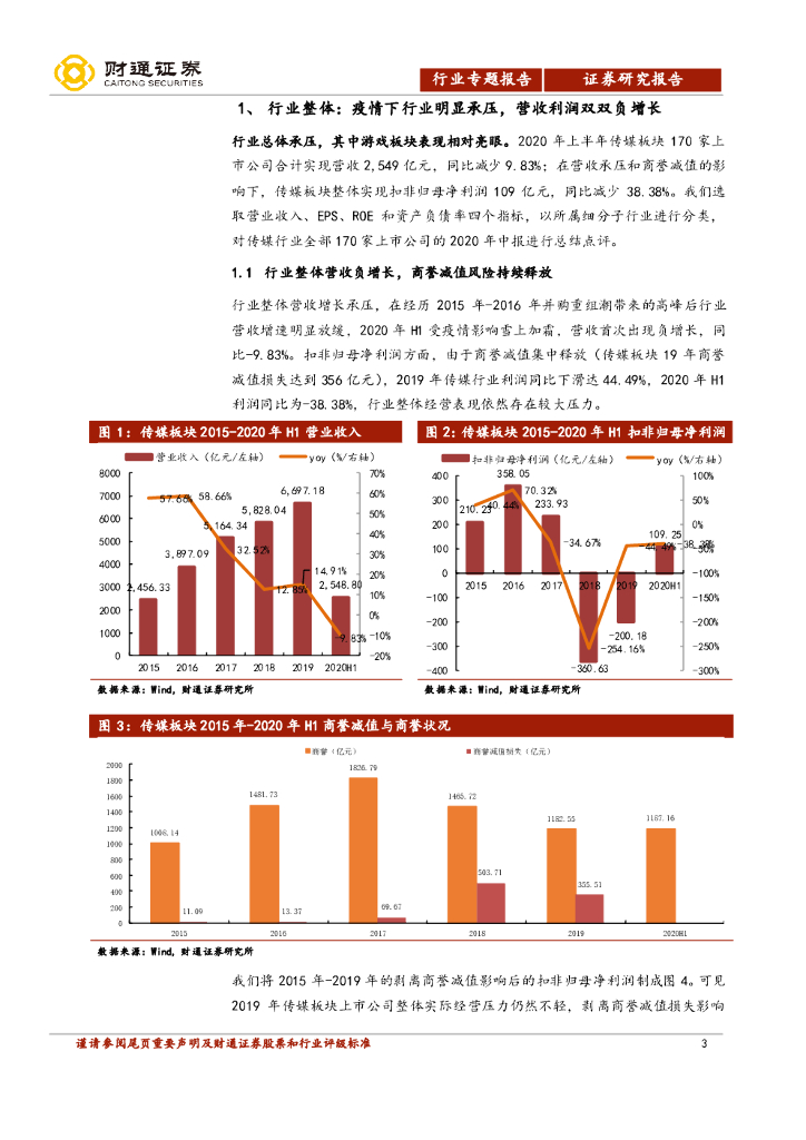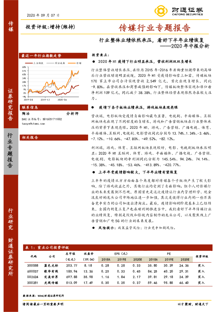 财通证券:传媒行业专题报告-2020年中报分析:行业整体业绩依然承压,看好下半年业绩恢复.pdf