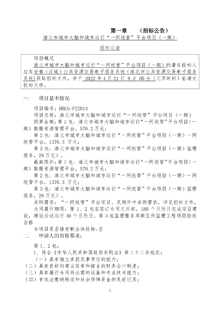 淮北市城市大脑和城市运行“一网统管”平台项目(一期).pdf