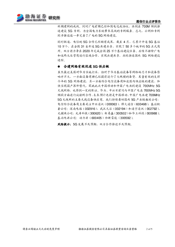 渤海证券:通信行业点评:广电联手移动,加快低频段5G网络建设.pdf