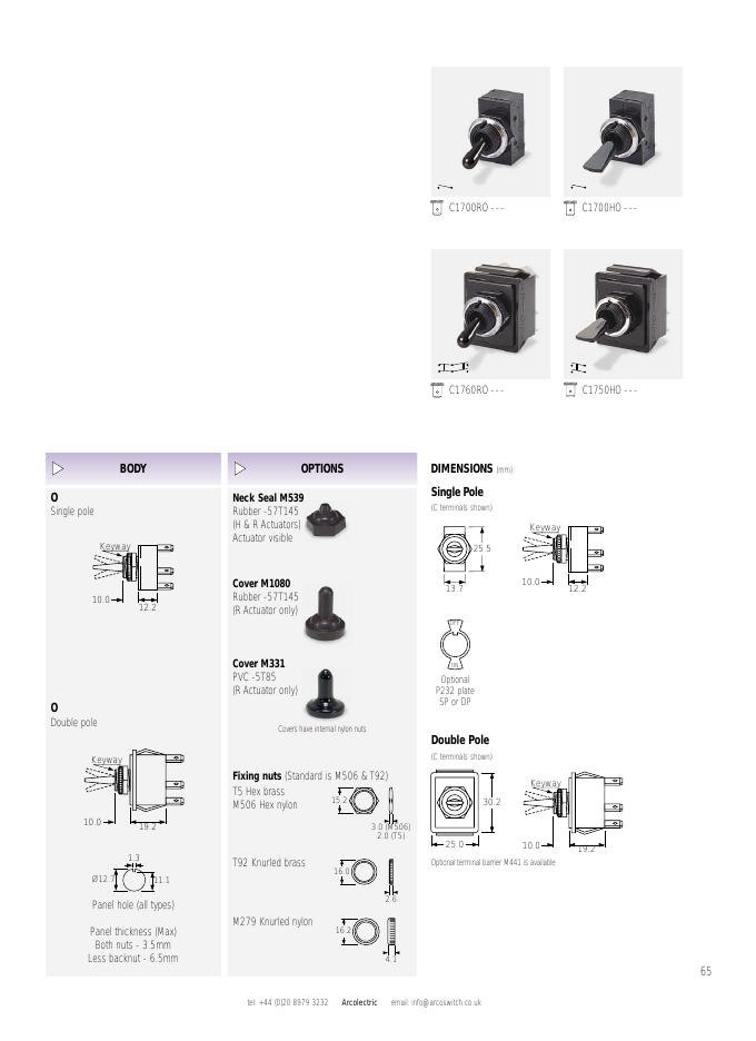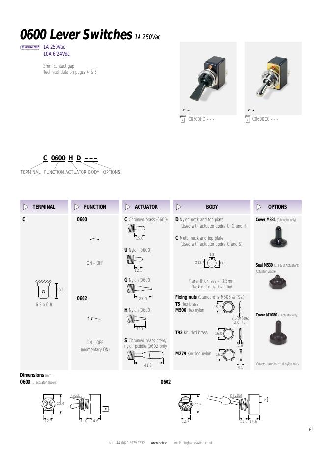 ARCOLECTRIC SWITCHES 0600 Lever Switches 1A 250Vac 数据手册.pdf