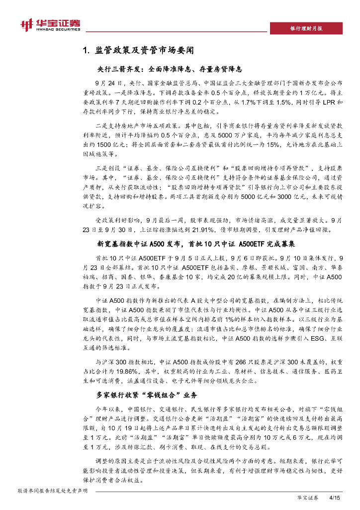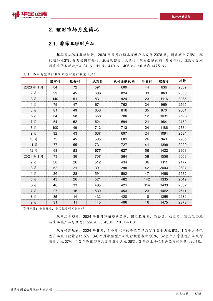 华宝证券:2024年9月银行理财市场月报:股债市场表现分化,权益类理财净值修复.pdf