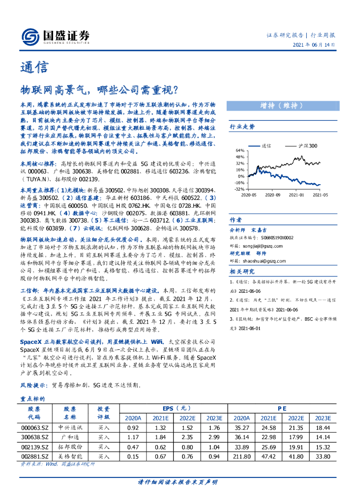 国盛证券:通信行业周报:物联网高景气,哪些公司需重视?.pdf