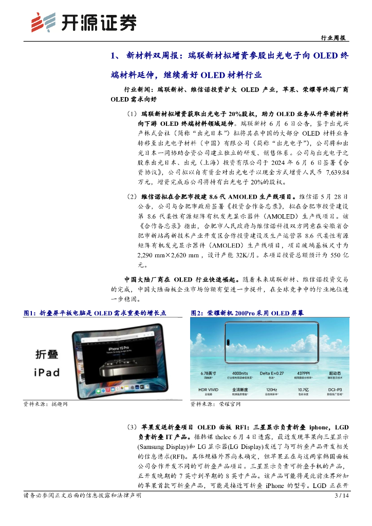 开源证券:新材料行业双周报:瑞联新材拟增资参股出光电子向OLED终端材料延伸,继续看好OLED材料行业.pdf
