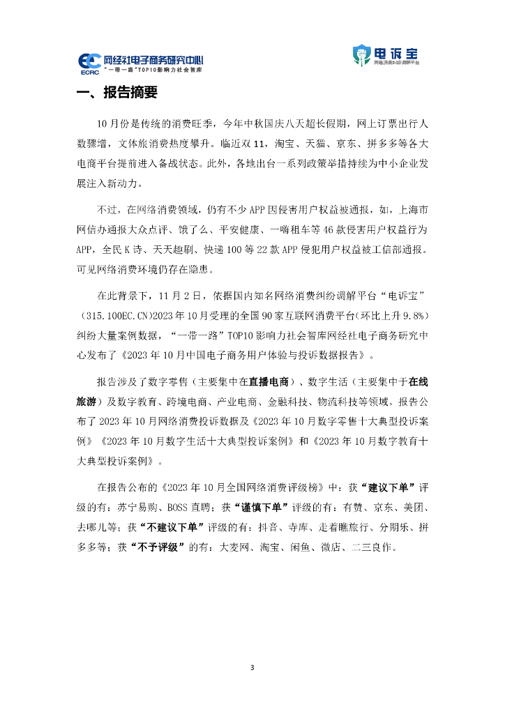 网经社:2023年10月中国电子商务用户体验与投诉数据报告.pdf