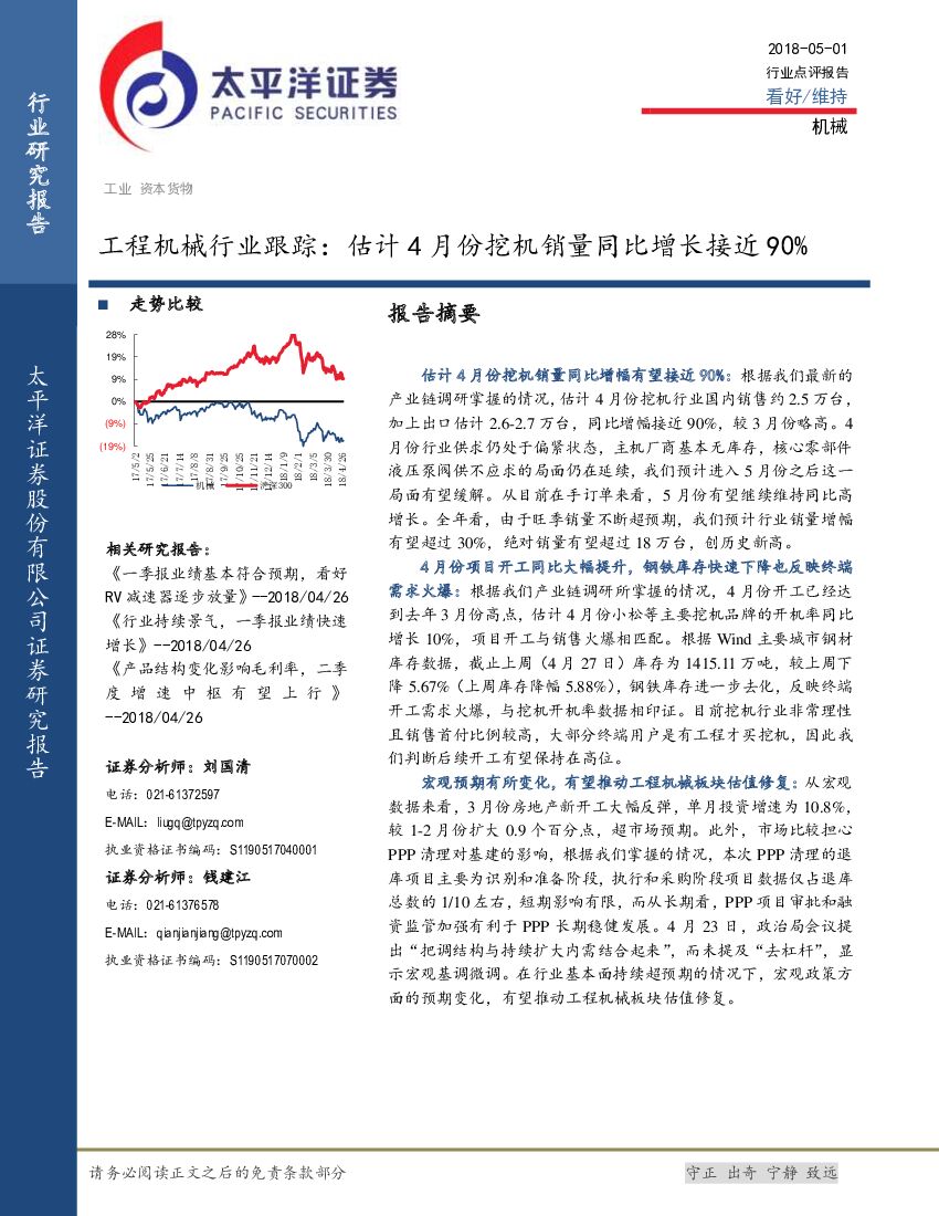 太平洋证券:工程机械行业跟踪:估计4月份挖机销量同比增长接近90%.pdf