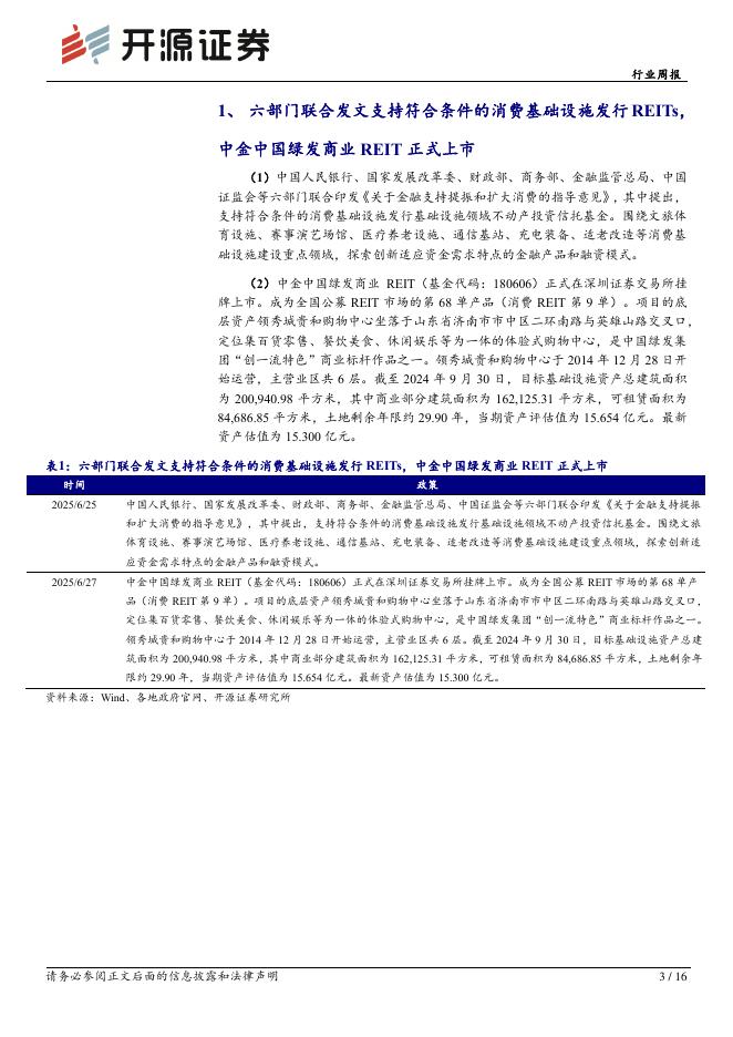 开源证券:REITs行业周报:六部门联合发文支持消费基础设施发行REITs,中海正式申报公募REITs.pdf