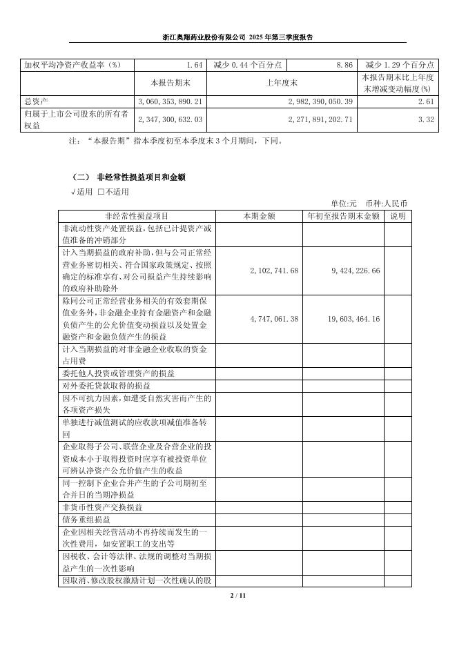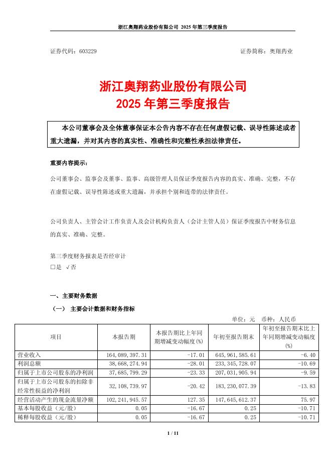 603229-奥翔药业:奥翔药业2025年第三季度报告.pdf