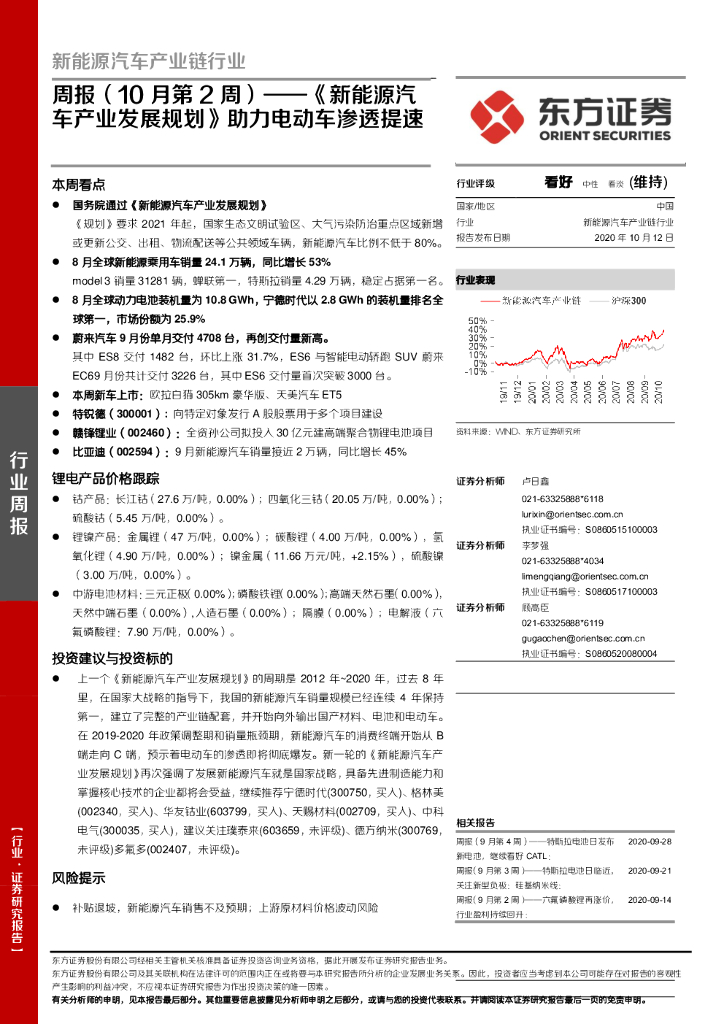 东方证券:新能源汽车产业链行业周报(10月第2周):《新能源汽车产业发展规划》助力电动车渗透提速.pdf