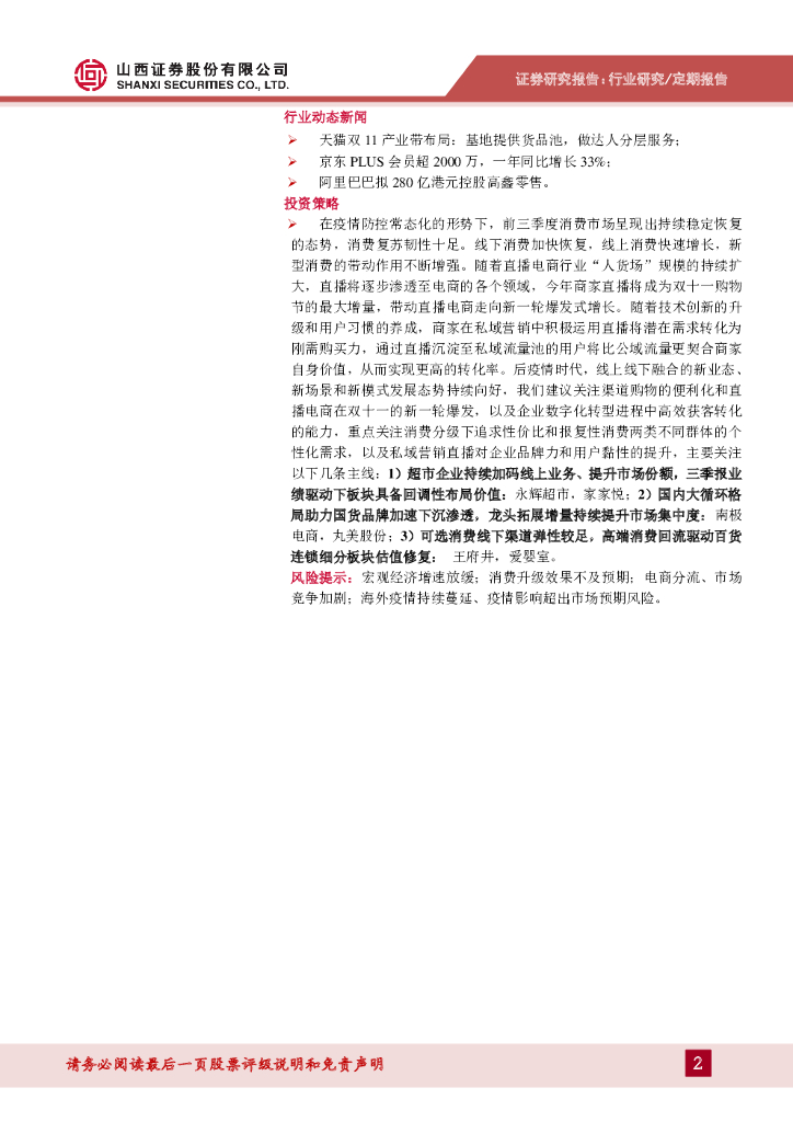 山西证券:商贸零售行业月度投资策略:三季度社零增速转正,直播电商将成双11最大增量.pdf