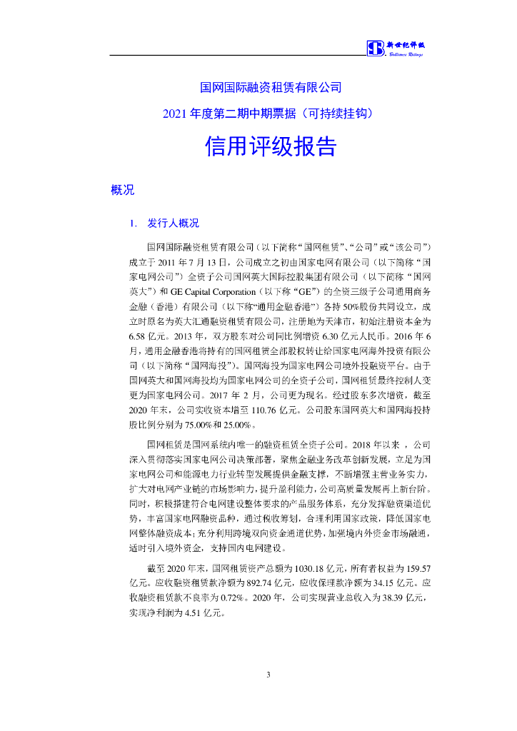 新世纪:国网国际融资租赁有限公司2021年度第二期中期票据(可持续挂钩)信用评级报告.pdf