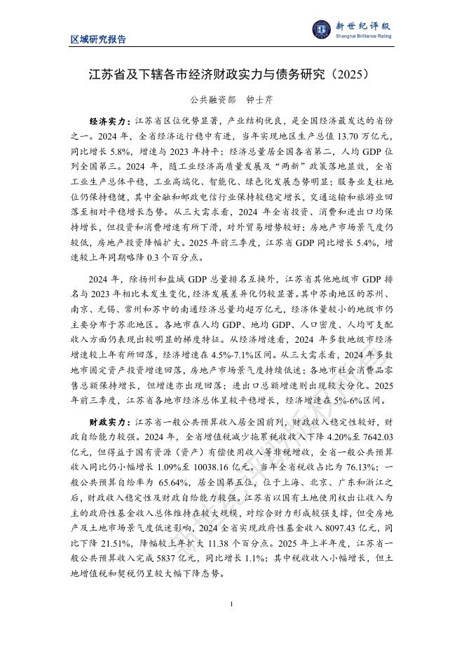 新世纪评级:江苏省及下辖各市经济财政实力与债务研究(2025).pdf