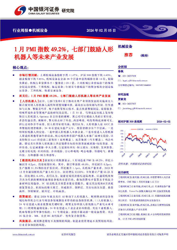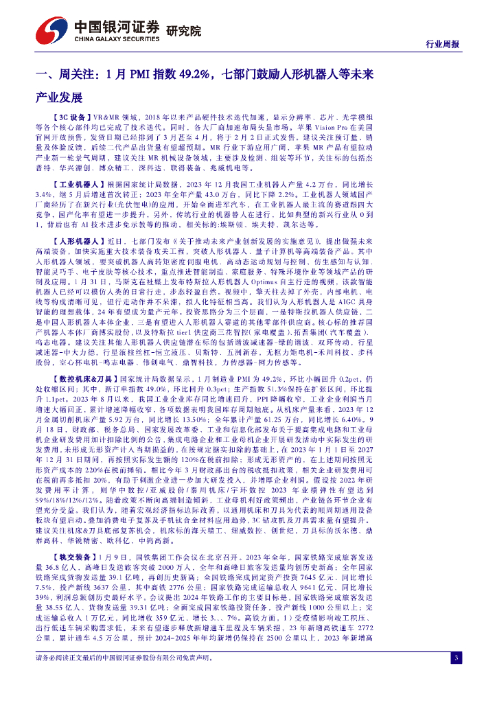 中国银河:机械设备行业周报:1月PMI指数49.2%,七部门鼓励人形机器人等未来产业发展.pdf