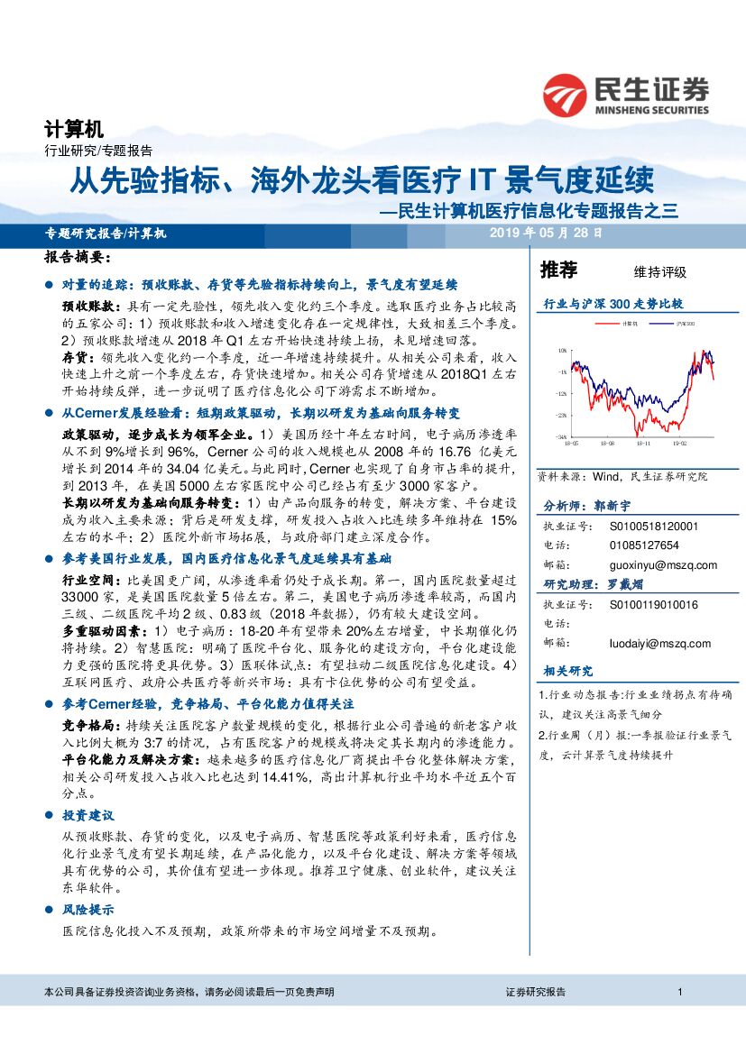 民生证券:计算机医疗信息化专题报告之三:从先验指标、海外龙头看医疗IT景气度延续.pdf