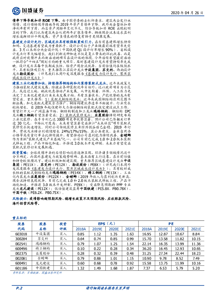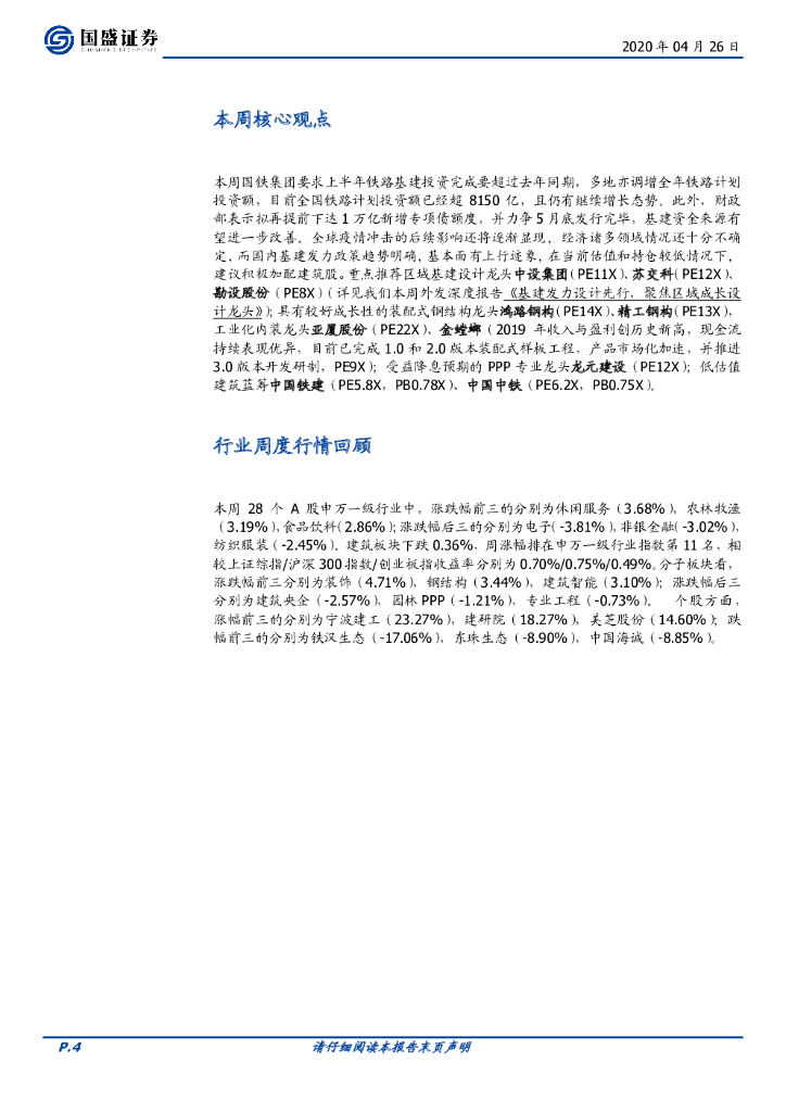 国盛证券:建筑装饰行业周报:铁路投资率先加力,继续推荐设计/钢构/央企龙头.pdf