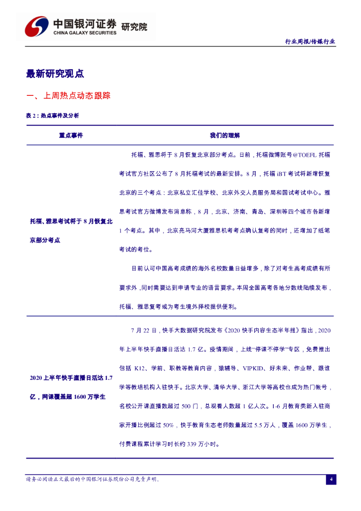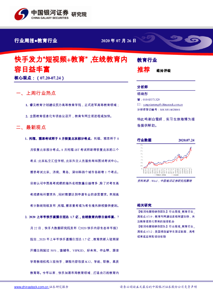 中国银河:教育行业周报:快手发力“短视频+教育”,在线教育内容日益丰富.pdf