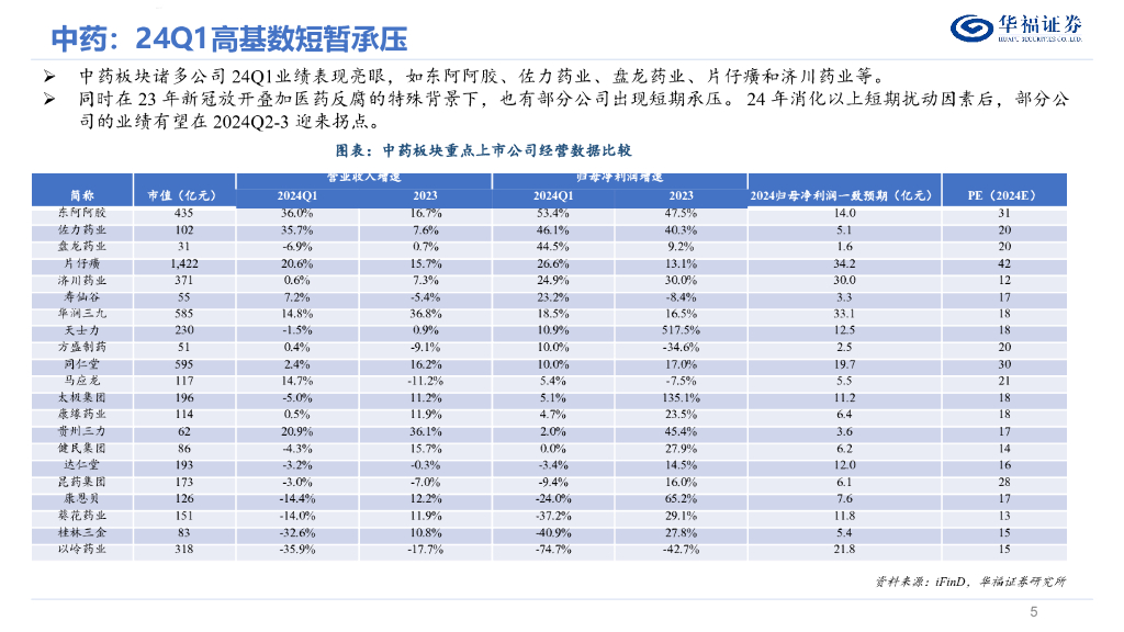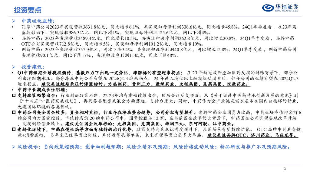 华福证券:中药板块23年年报及24Q1季报总结:滞涨标的有望迎拐点,关注国企改革标的.pdf