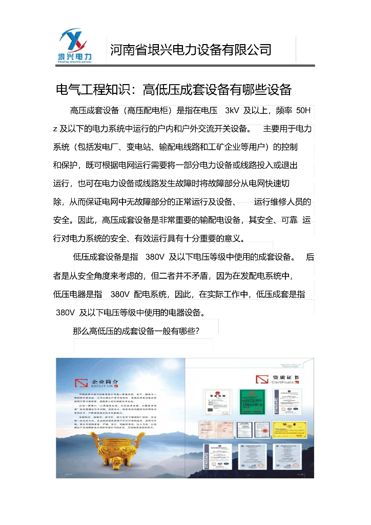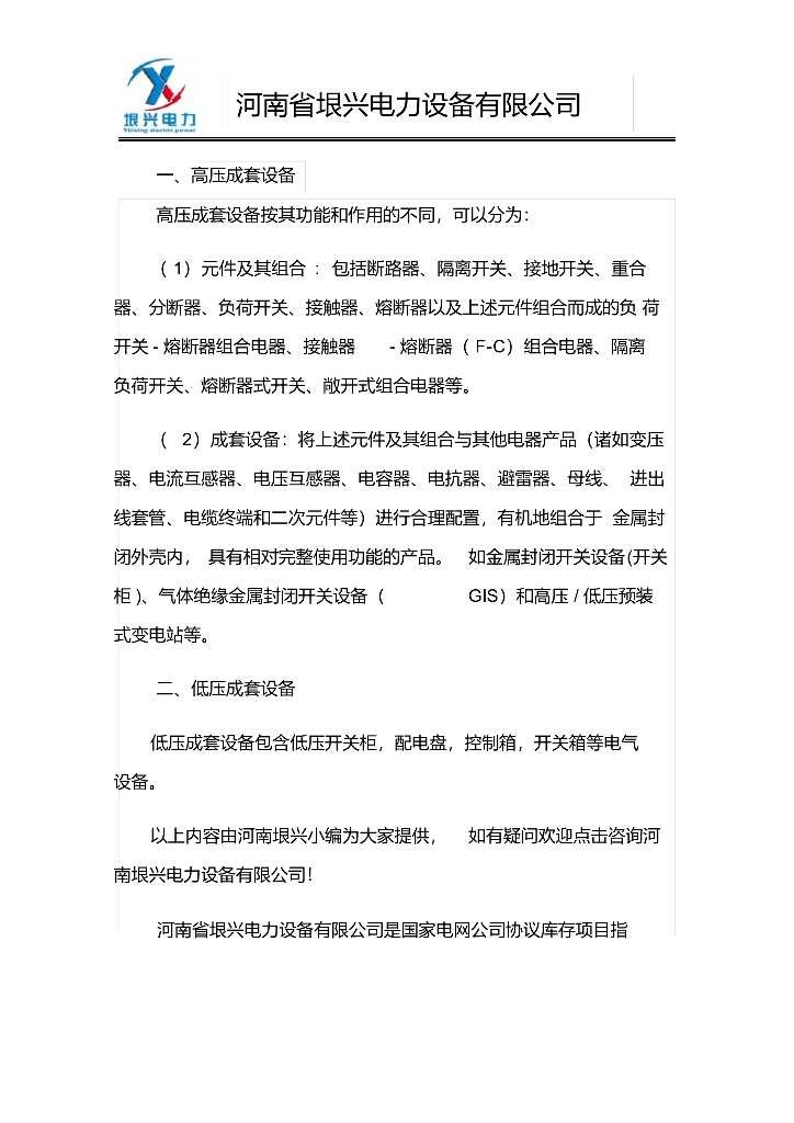 电气工程知识:高低压成套设备有哪些设备.doc