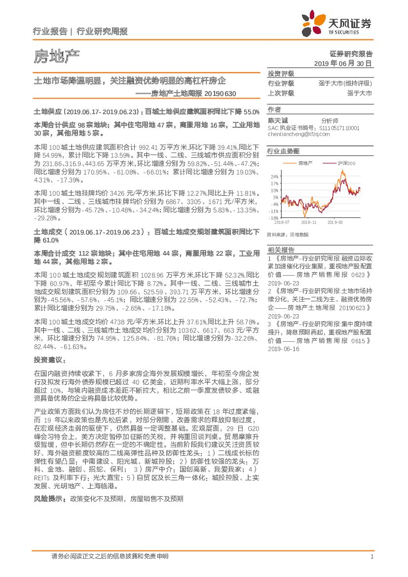 天风证券:房地产土地周报:土地市场降温明显,关注融资优势明显的高杠杆房企.pdf