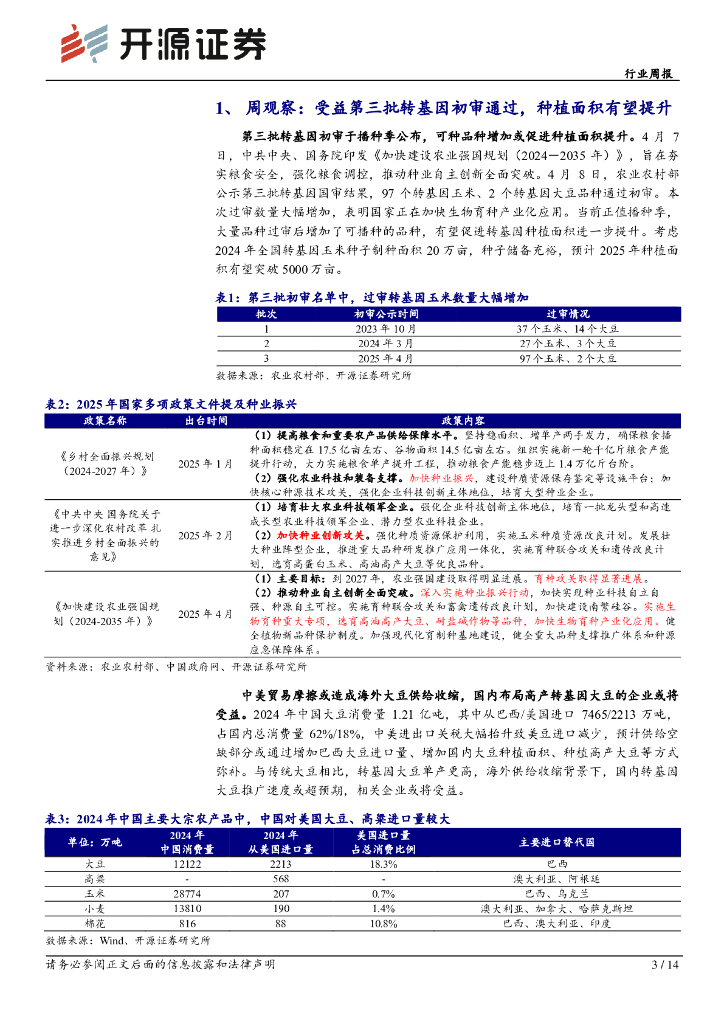 开源证券:农林牧渔行业周报:受益第三批转基因初审通过,种植面积有望提升.pdf