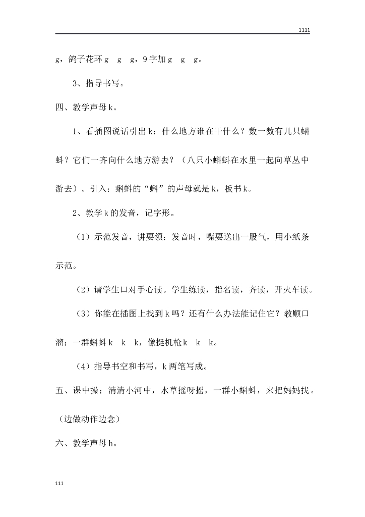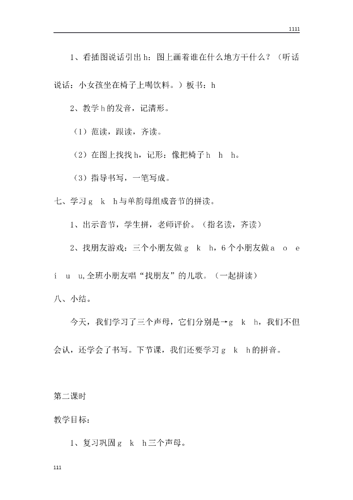 一年级语文(教案3)5 g k h教学设计.doc