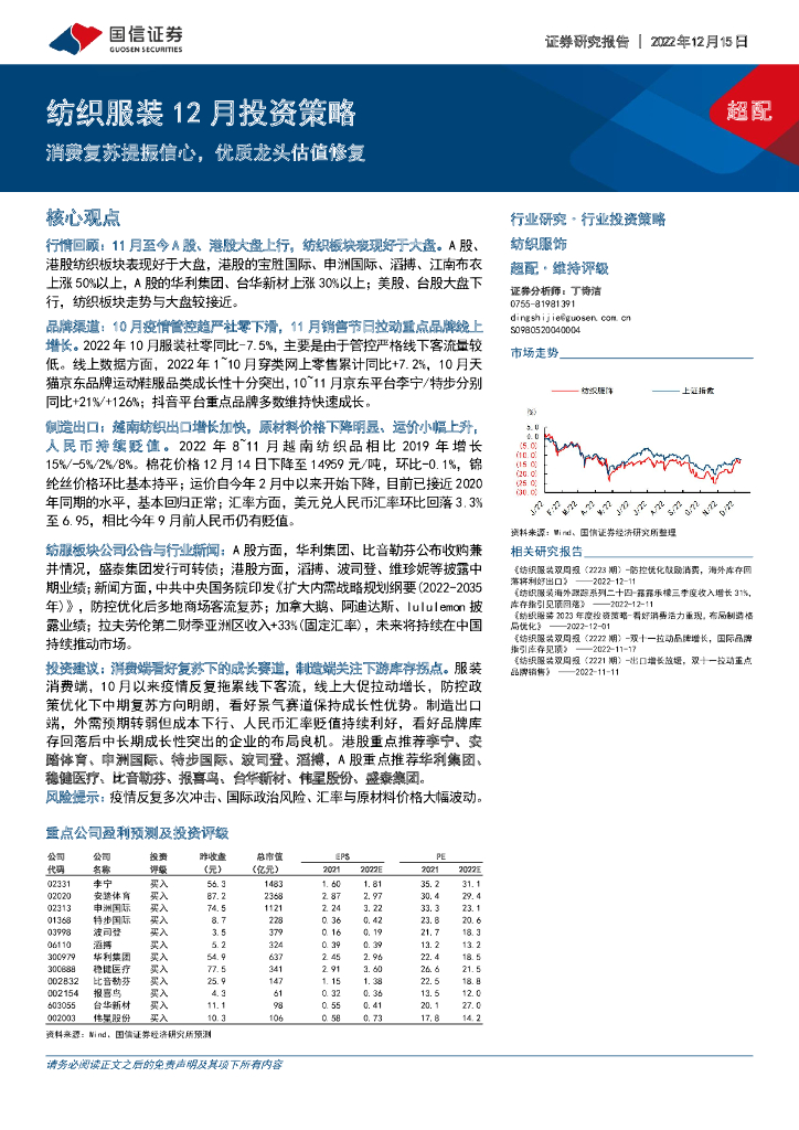 国信证券:纺织服装12月投资策略:消费复苏提振信心,优质龙头估值修复.pdf