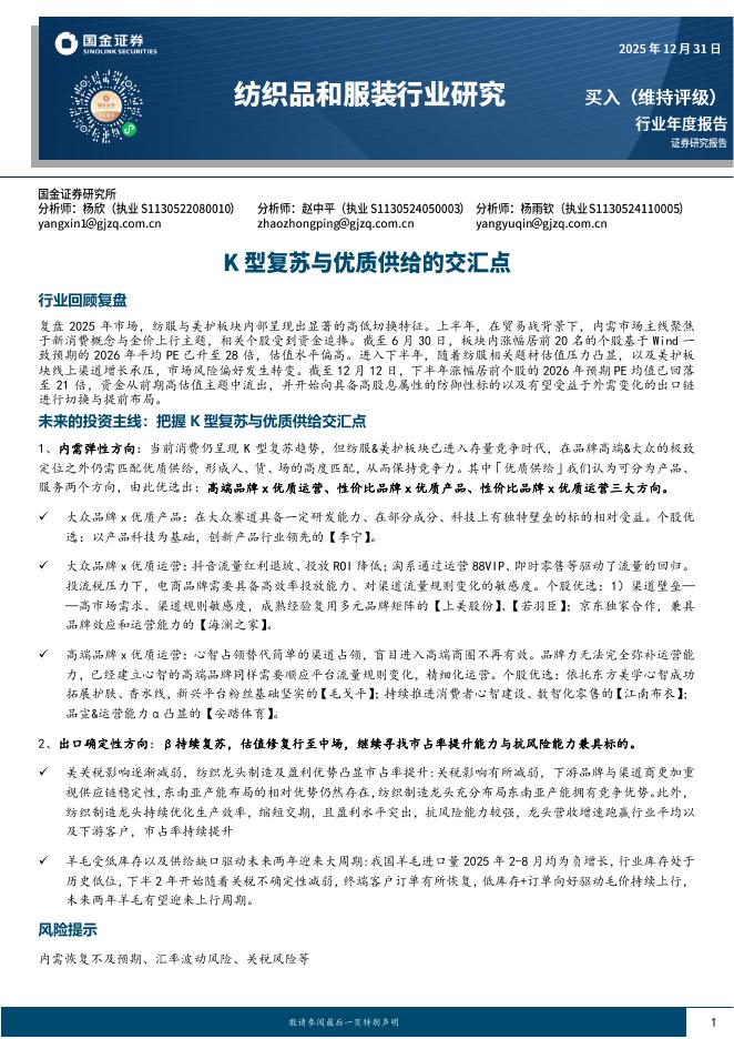 国金证券:纺织品和服装行业研究:K型复苏与优质供给的交汇点.pdf