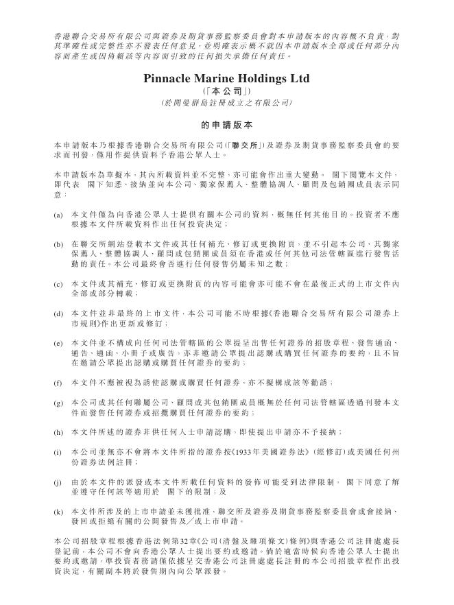 Pinnacle Marine Holdings Ltd港交所IPO上市招股说明书.pdf